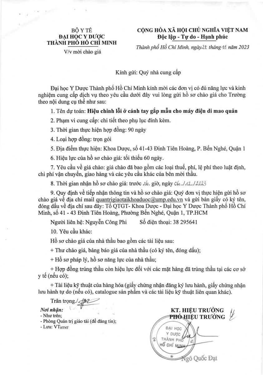 Thời gian nhận hồ sơ chào giá: từ ngày ra thông báo đến trước 16g00 ngày 06/12/2023