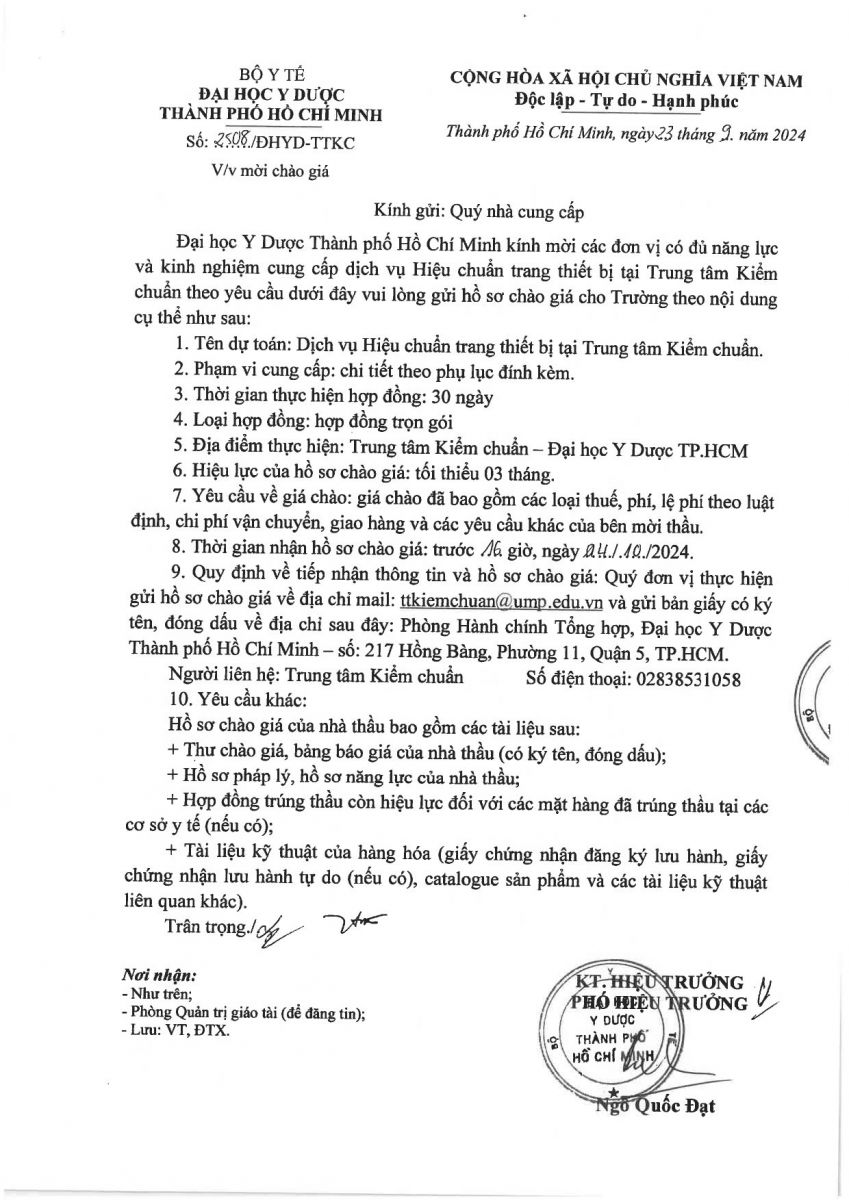 Thời gian nhận hồ sơ chào giá: từ ngày ra thông báo đến trước 16 giờ 00 ngày 04/10/2024