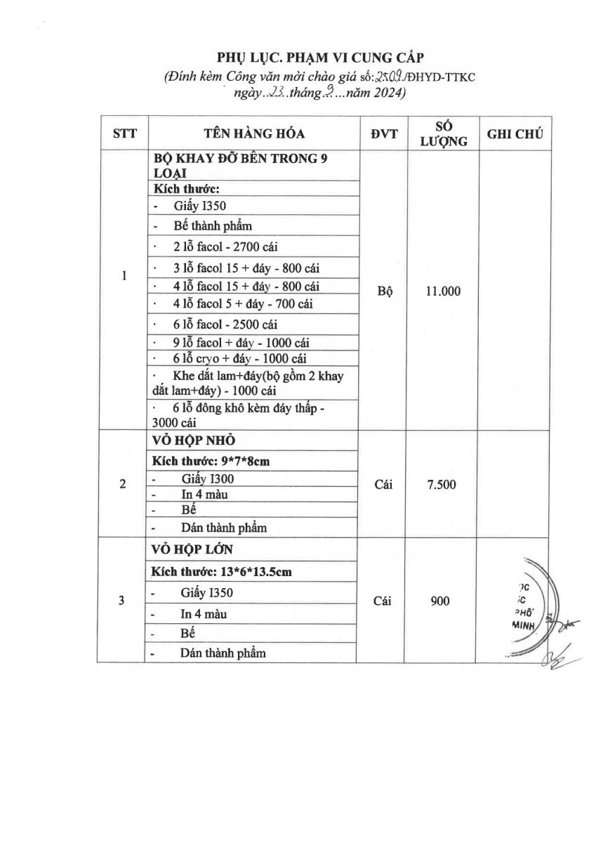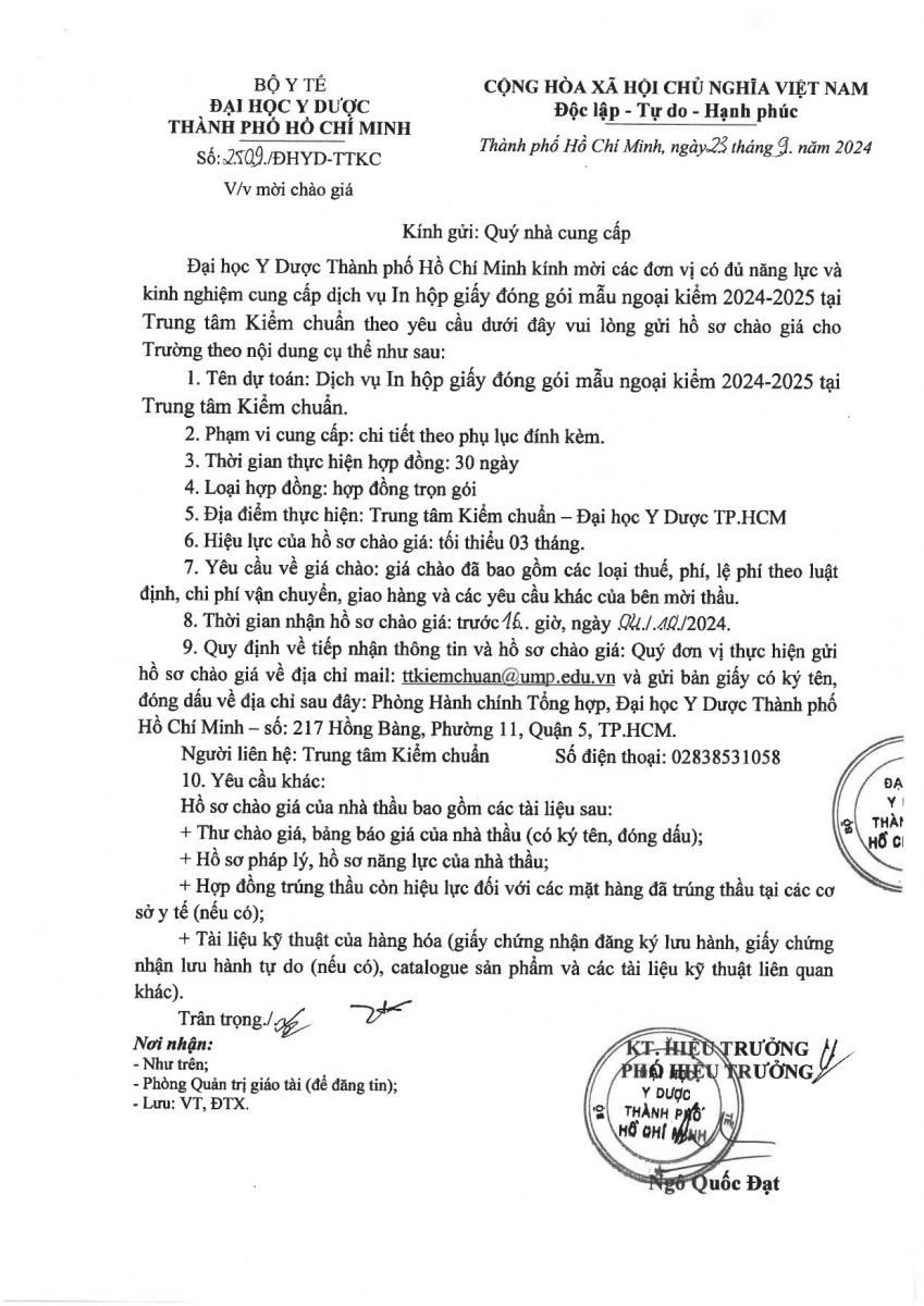 Thời gian nhận hồ sơ chào giá: từ ngày ra thông báo đến trước 16 giờ 00 ngày 04/10/2024