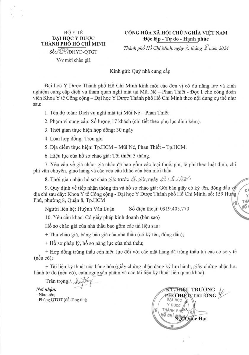 Thời gian nhận hồ sơ chào giá: từ ngày ra thông báo đến trước 16 giờ 00 ngày 17/8/2024