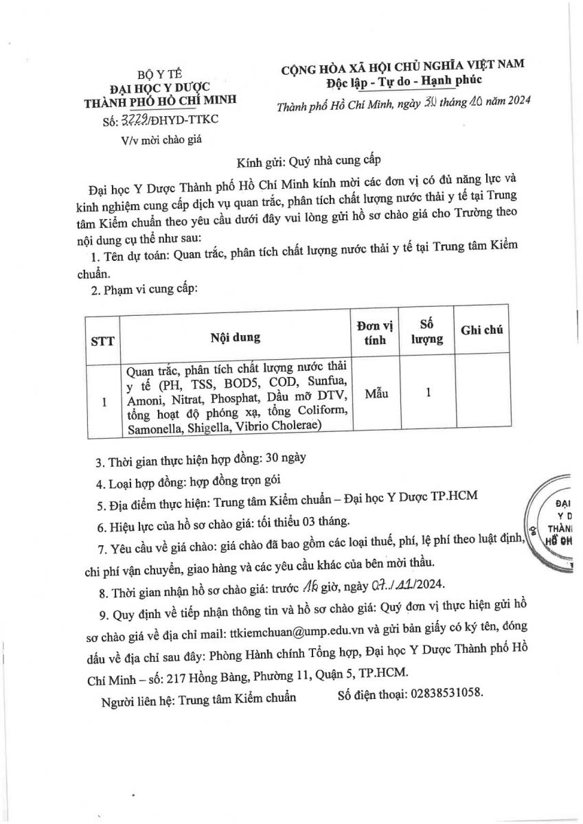 Thời gian nhận hồ sơ chào giá: từ ngày ra thông báo đến trước 16 giờ 00 ngày 07/11/2024