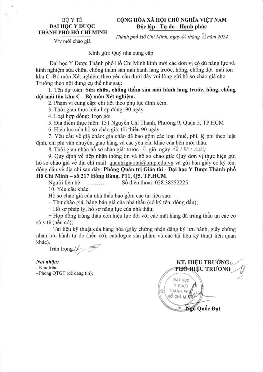 Thời gian nhận hồ sơ chào giá: từ ngày ra thông báo đến trước 10 giờ 00 ngày 28/3/2024