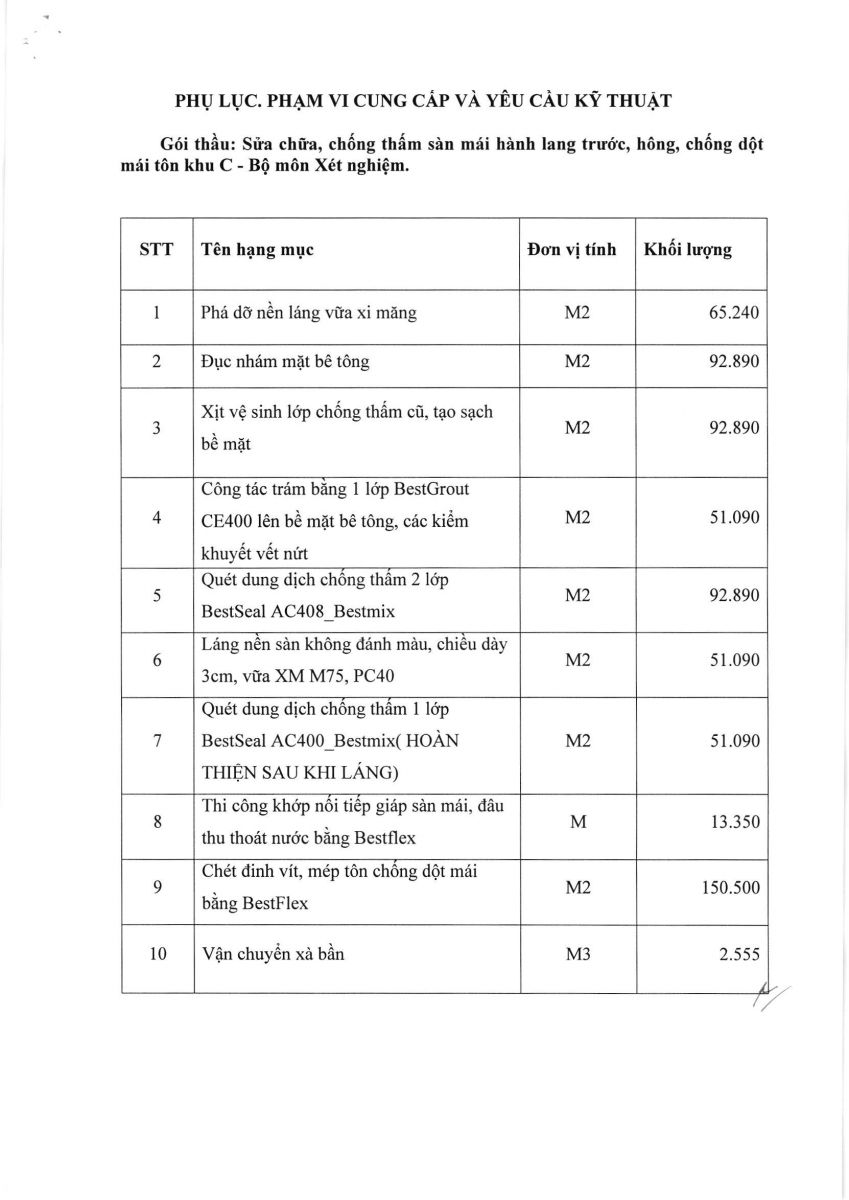 vx88 code mời chào giá: " Cung cấp dịch vụ sửa chữa, chống thấm sàn máy hành lang trước ,hông,chống dột mái tôn khu C BM Xét Nghiệm-K ĐD- Đại Học vx88b TP.HCM