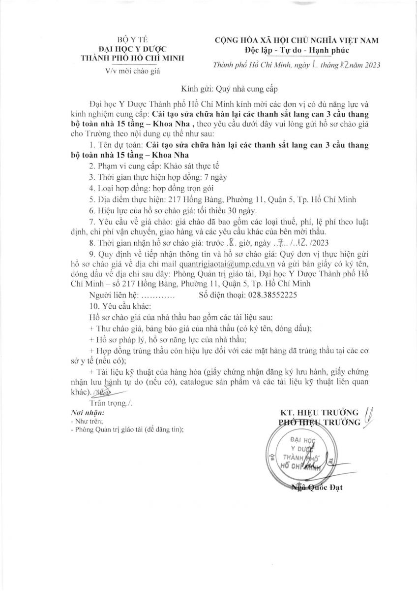 Thời gian nhận hồ sơ chào giá: từ ngày ra thông báo đến trước 8 g 00 ngày 07/12/2023