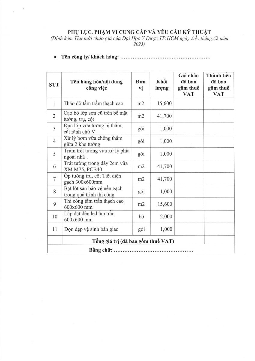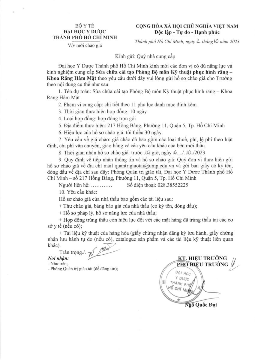 Thời gian nhận hồ sơ chào giá: từ ngày ra thông báo đến trước 10 g 00 ngày 06/10/2023