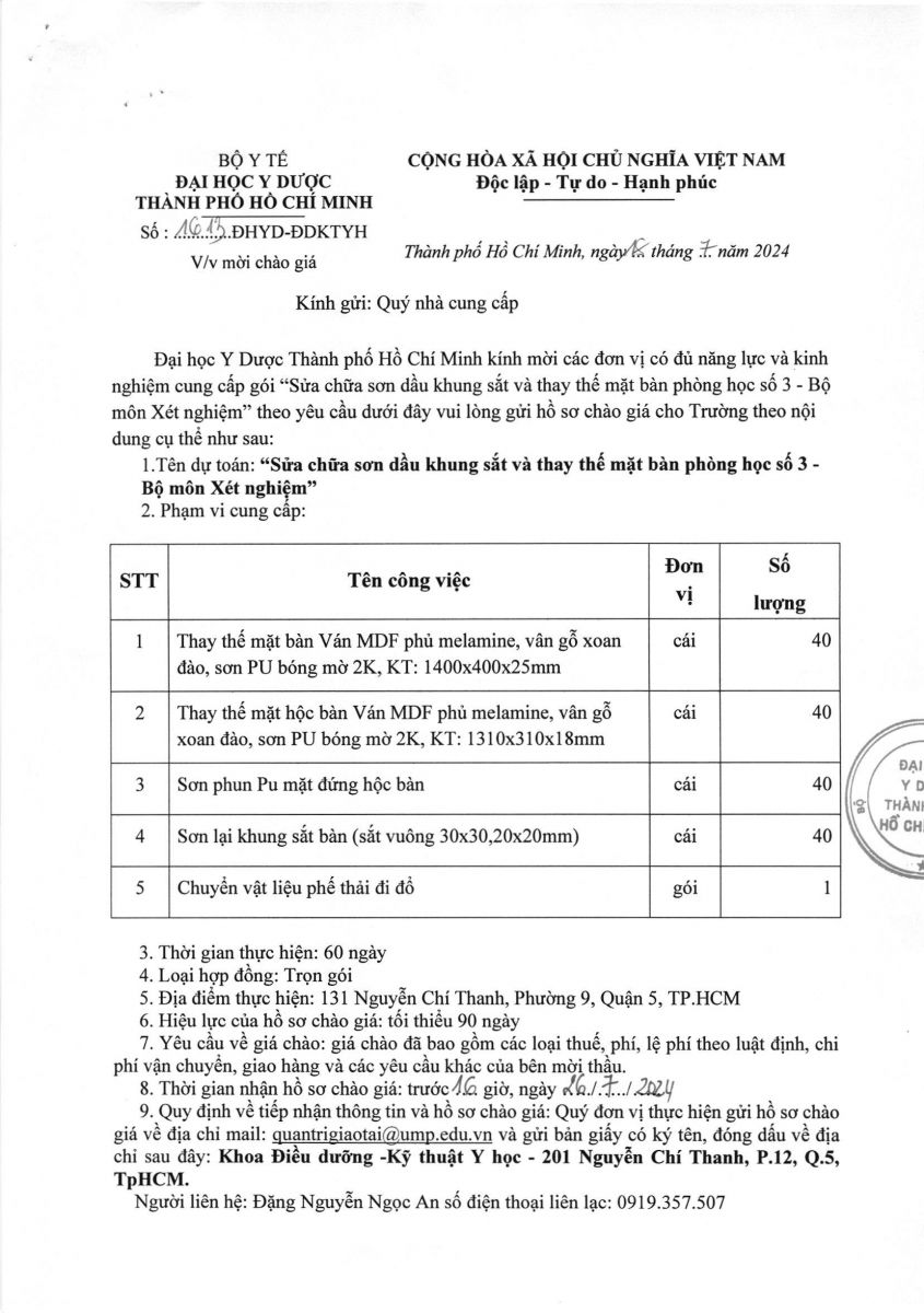 Thời gian nhận hồ sơ chào giá: từ ngày ra thông báo đến 16 giờ 00 ngày 26/7/2024