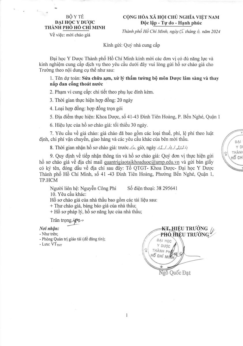 Thời gian nhận hồ sơ chào giá: từ ngày ra thông báo đến trước 16 giờ 00 ngày 12/4/2024
