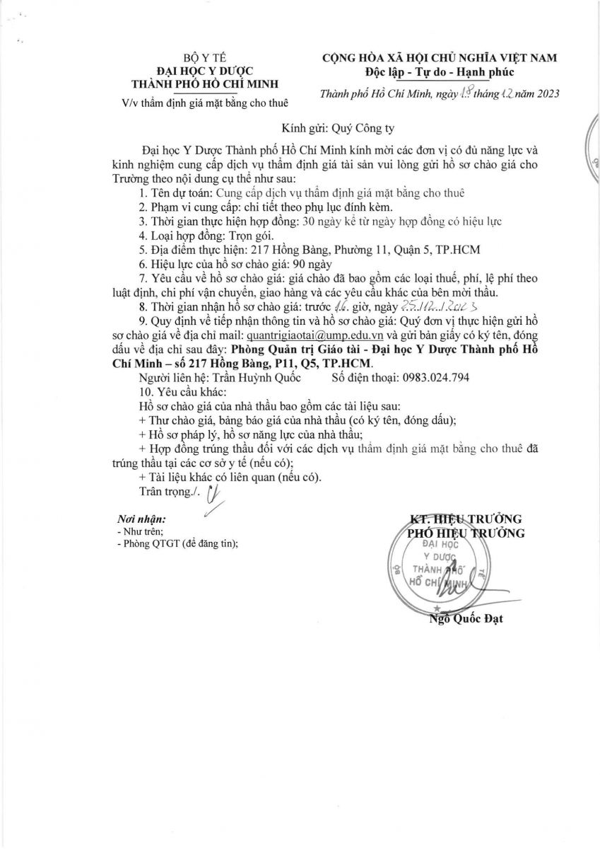 Thời gian nhận hồ sơ chào giá: từ ngày ra thông báo đến trước 16g00 ngày 25/12/2023