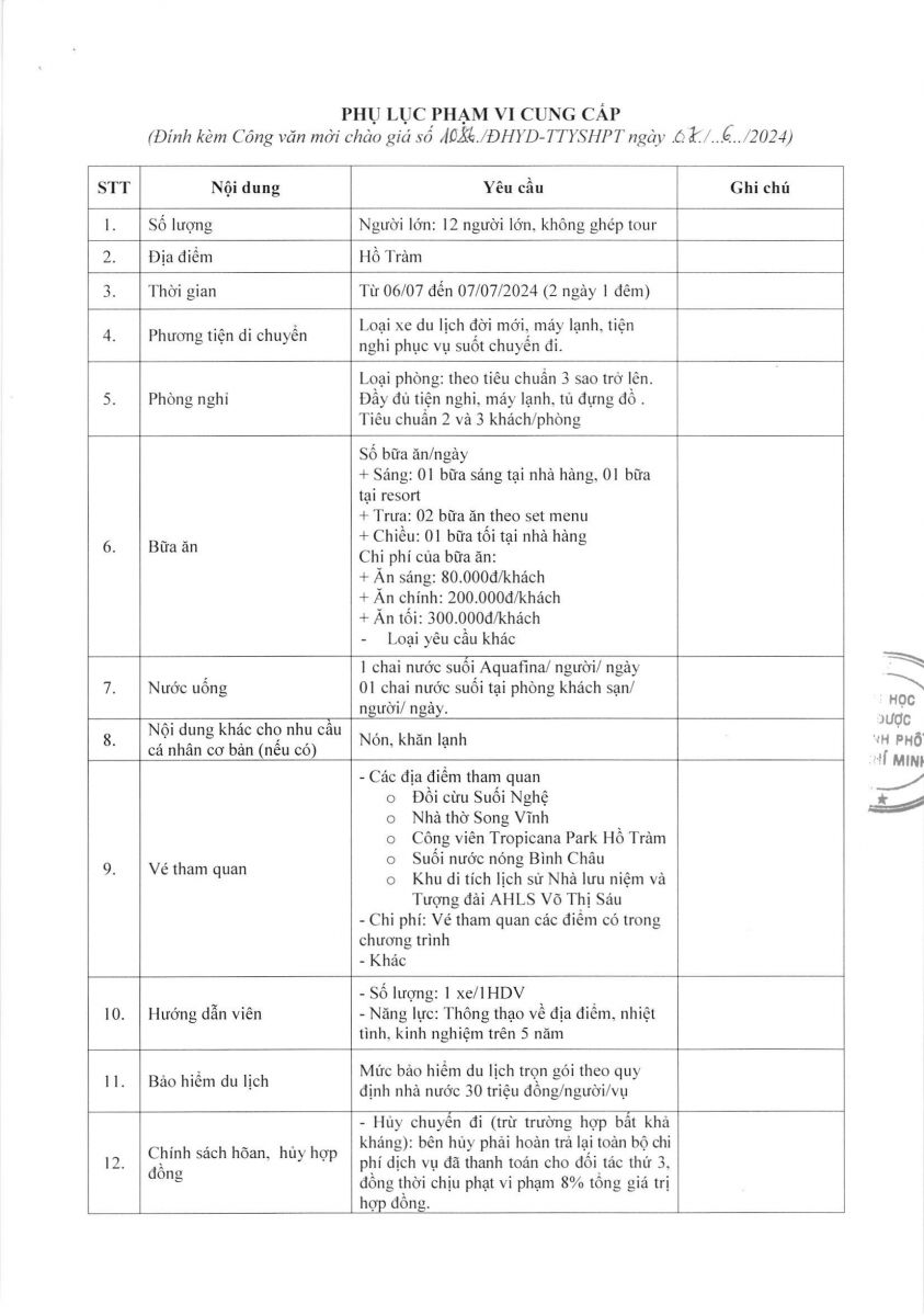 Thời gian nhận hồ sơ chào giá: từ ngày ra thông báo đến trước 16 giờ 00' ngày 17/6/2024