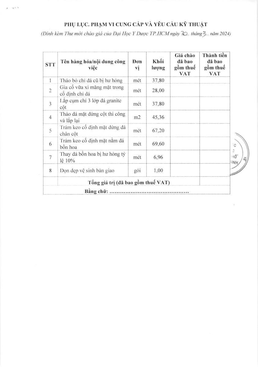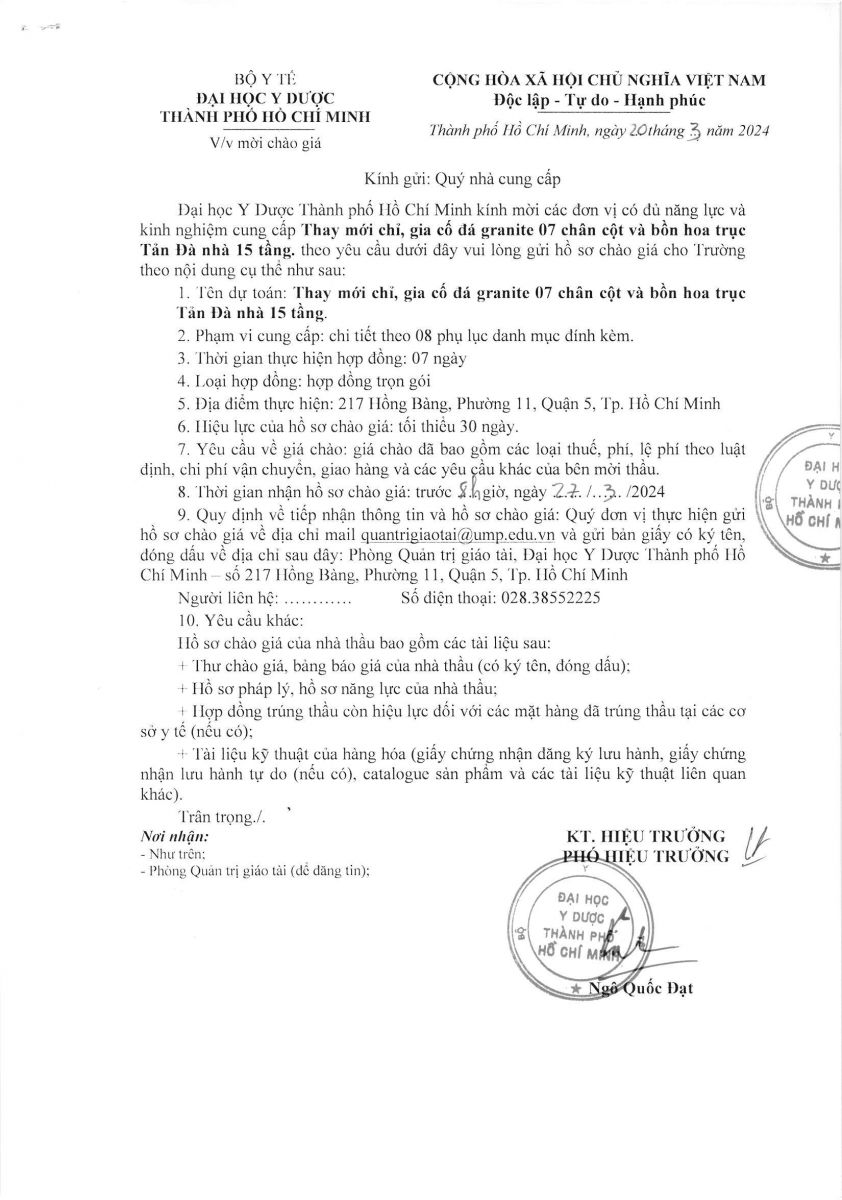 Thời gian nhận hồ sơ chào giá: từ ngày ra thông báo đến trước 08 giờ 00 ngày 27/3/2024