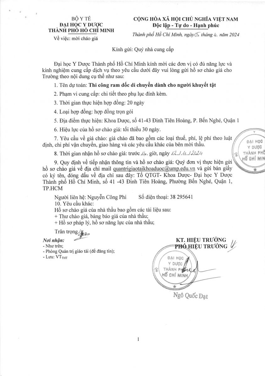 vx88 code mời chào giá: " Cung cấp dịch vụ thi công ram dốc di chuyển dành cho người khuyết tật -Khoa Dược- Đại Học vx88b TP.HCM