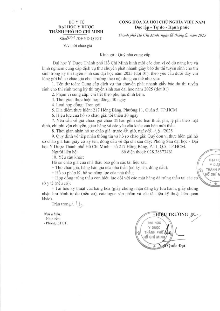 vx88 code mời chào giá: "Cung cấp dịch vụ thư chuyển phát nhanh giấy báo dự thi tuyển sinh cho thí sinh trong kỳ thi tuyển sinh sau đại học năm 2025 (đợt 01)” P.SĐH- vx88 esball vx88b