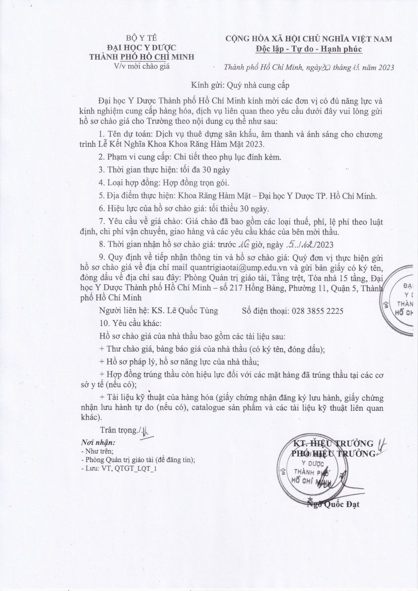 vx88 code mời chào giá: " Cung cấp dịch vụ thuê dựng sân khấu, âm thanh và ánh sáng cho chương trình lễ Kết Nghĩa- Khoa RHM - Đại Học vx88b Thành Phố vx88m