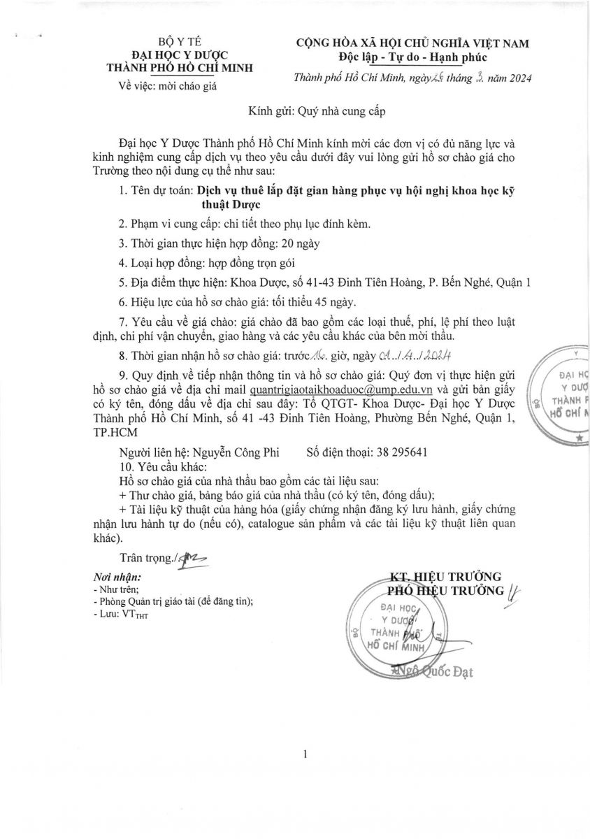 Thời gian nhận hồ sơ chào giá: từ ngày ra thông báo đến trước 16 giờ 00 ngày 01/4/2024