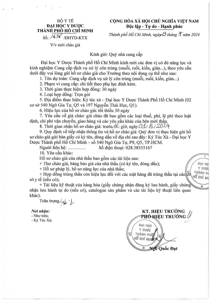Thời gian nhận hồ sơ chào giá: từ ngày ra thông báo đến trước 16 giờ 00 ngày 01/8/2024