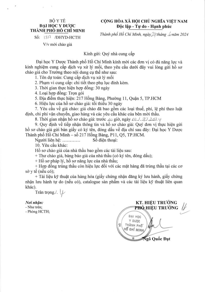 Thời gian nhận hồ sơ chào giá: từ ngày ra thông báo đến trước 10 giờ 00 ngày 10/7/2024