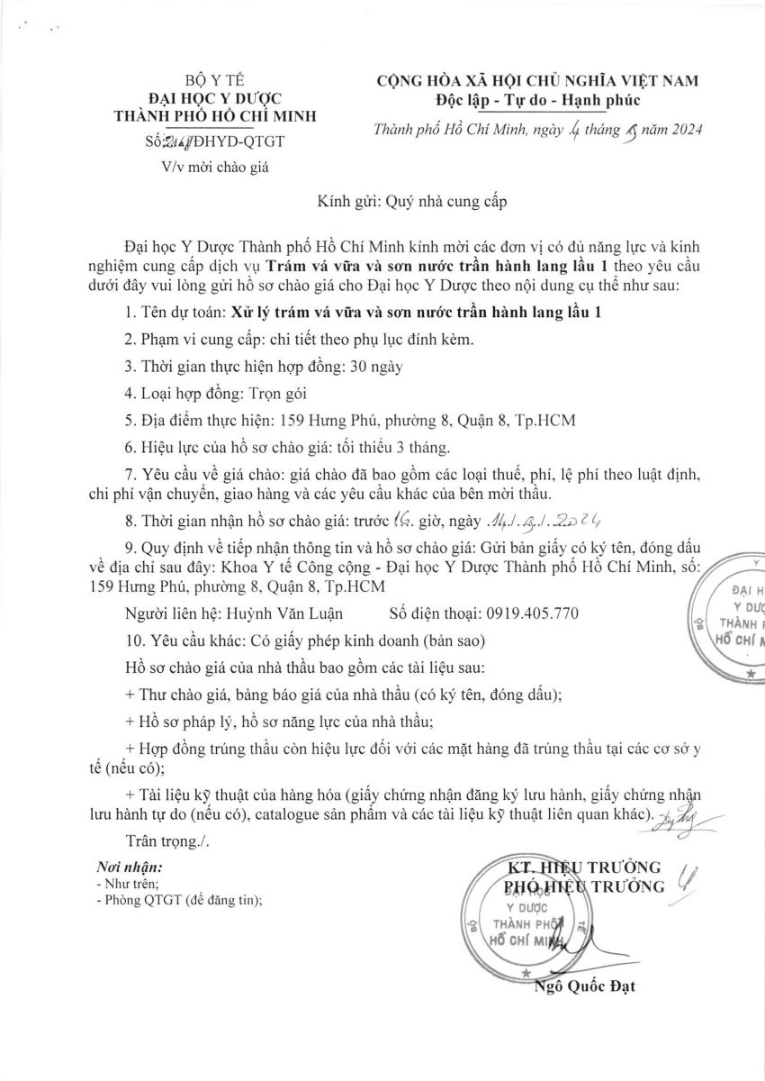 Thời gian nhận hồ sơ chào giá: từ ngày ra thông báo đến trước 16 giờ 00 ngày 14/9/2024