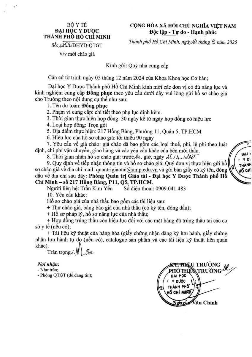 Thời gian nhận hồ sơ chào giá: từ ngày ra thông báo đến trước 16 giờ, ngày 25/4/2025