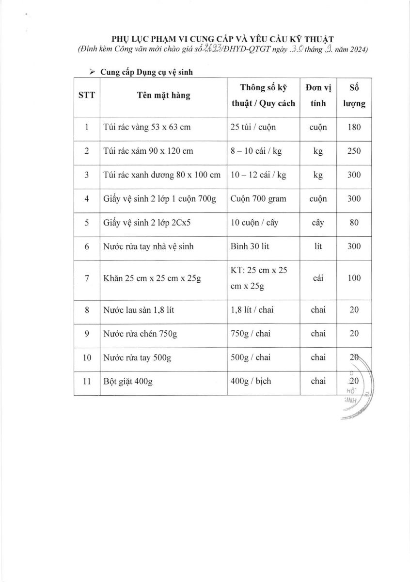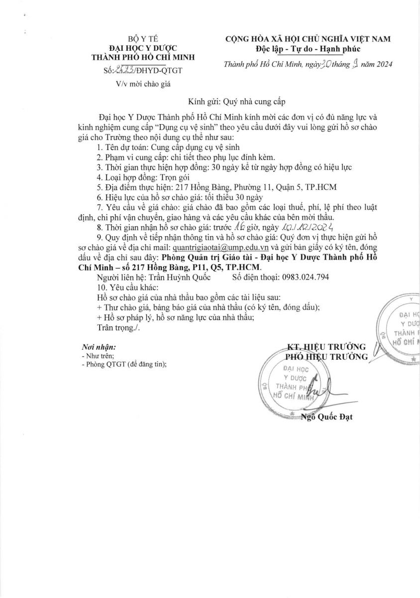 Thời gian nhận hồ sơ chào giá: từ ngày ra thông báo đến trước 16g00 ngày 10/10/2024