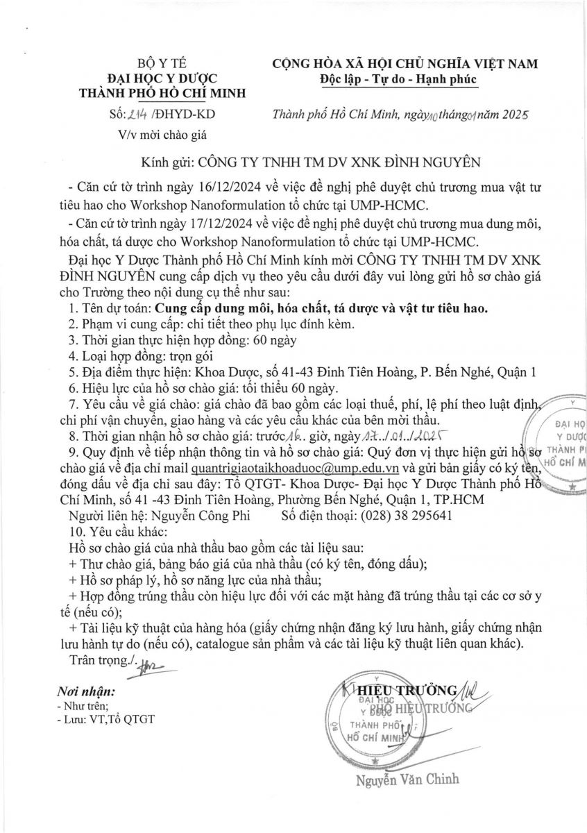 Thời gian nhận hồ sơ chào giá: từ ngày ra thông báo đến trước 16 giờ, ngày 17/01/2025