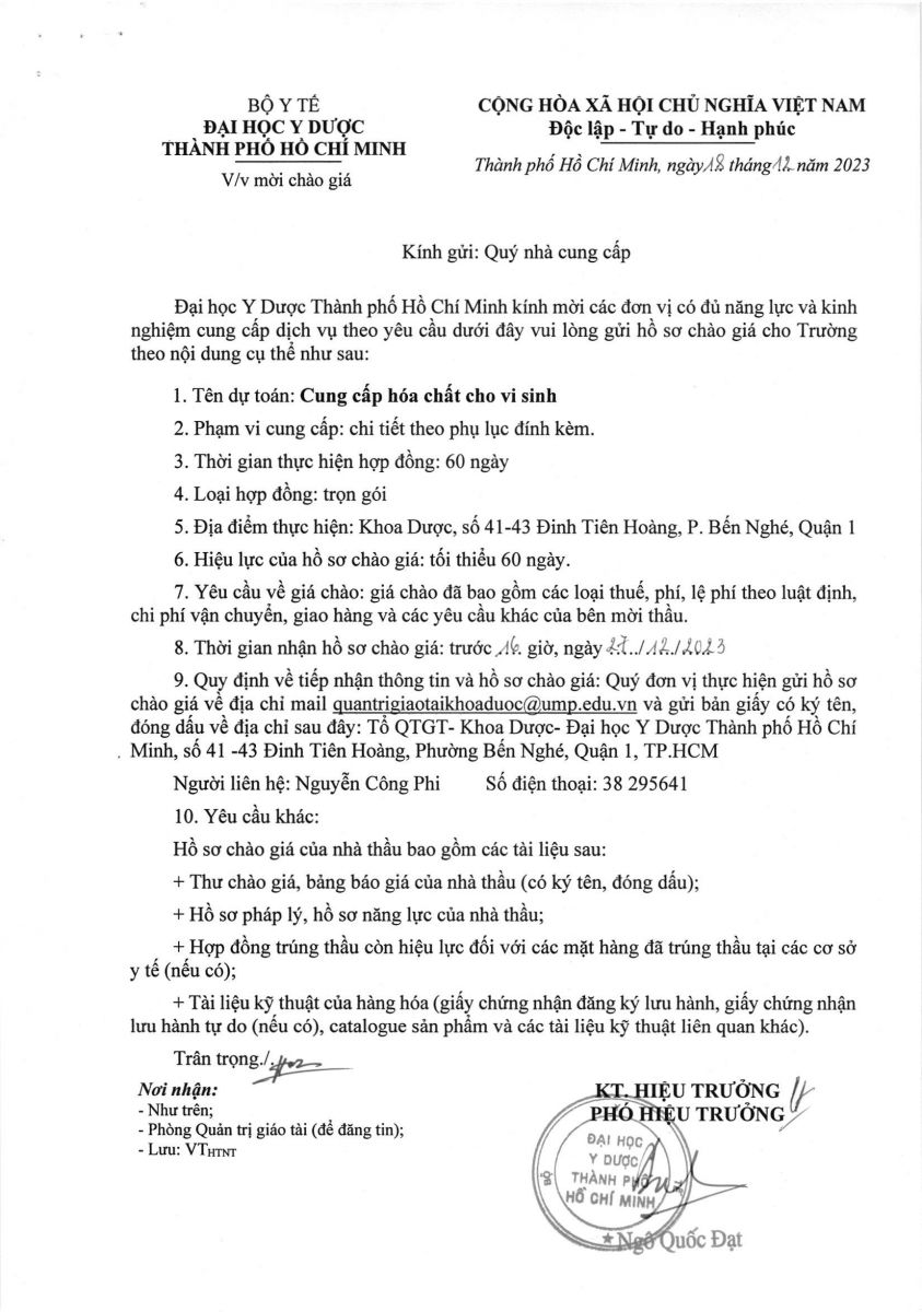 Thời gian nhận hồ sơ chào giá: từ ngày ra thông báo đến trước 16g00 ngày 27/12/2023