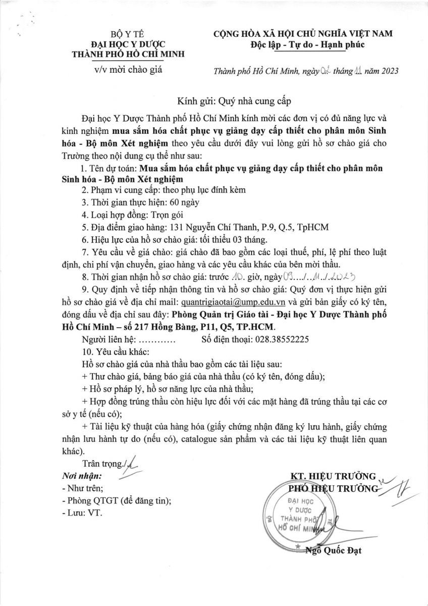 Thời gian nhận hồ sơ chào giá: từ ngày ra thông báo đến trước 10g 00 ngày 09/11/2023