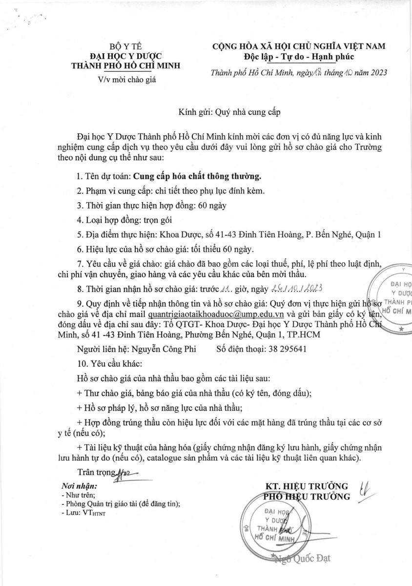 Thời gian nhận hồ sơ chào giá: từ ngày ra thông báo đến trước 11g00 ngày 26/10/2023