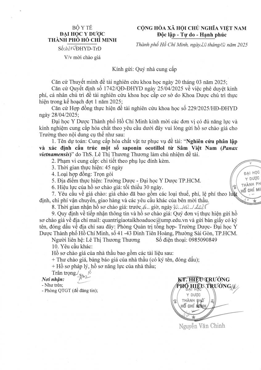 Thời gian nhận hồ sơ chào giá: từ ngày ra thông báo đến trước 16 ngày 30/10/2025