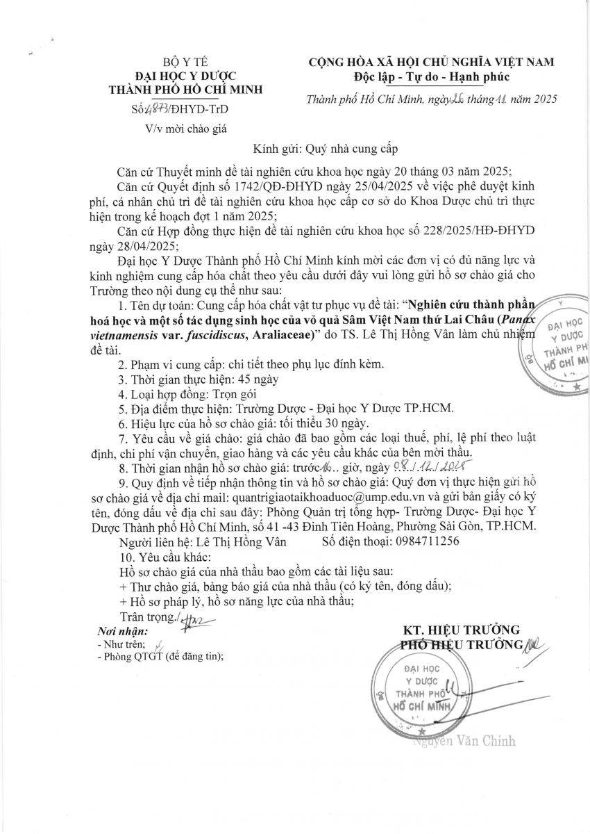Thời gian nhận hồ sơ chào giá: từ ngày ra thông báo đến trước 16 giờ, ngày 08/12/2025