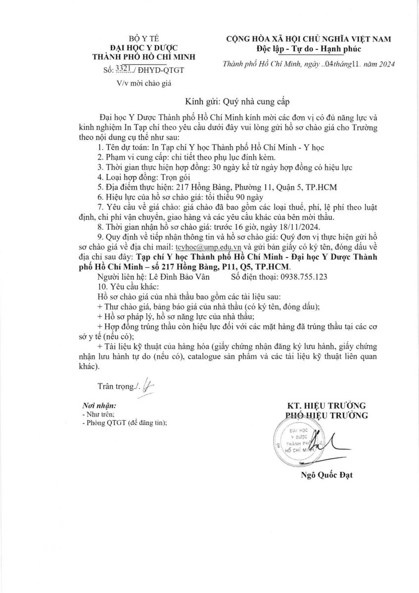 Thời gian nhận hồ sơ chào giá: từ ngày ra thông báo đến trước 16 giờ 00 ngày 18/11/2024