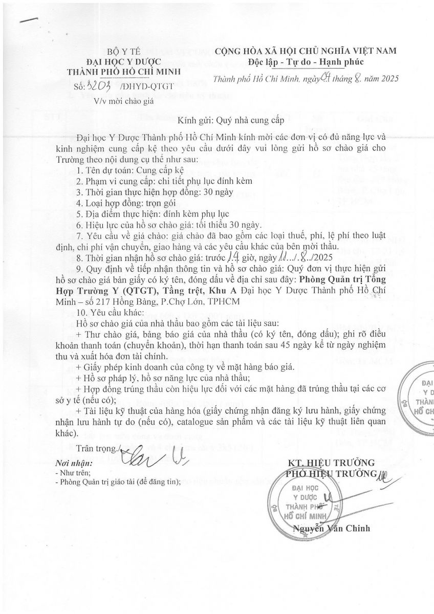 Thời gian nhận hồ sơ chào giá: từ ngày ra thông báo đến trước 14 giờ, ngày 11/8/2025
