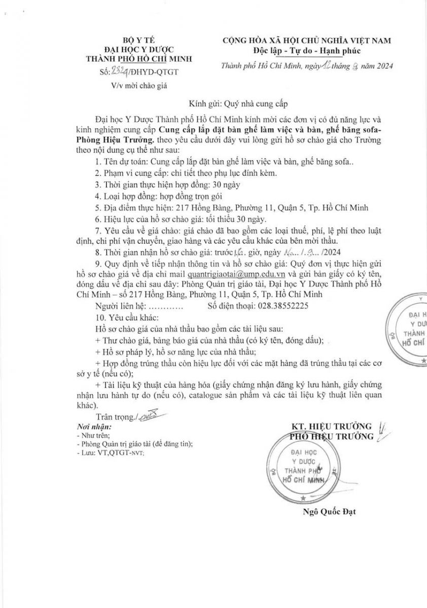 Thời gian nhận hồ sơ chào giá: từ ngày ra thông báo đến trước 16 giờ 00 ngày 16/9/2024