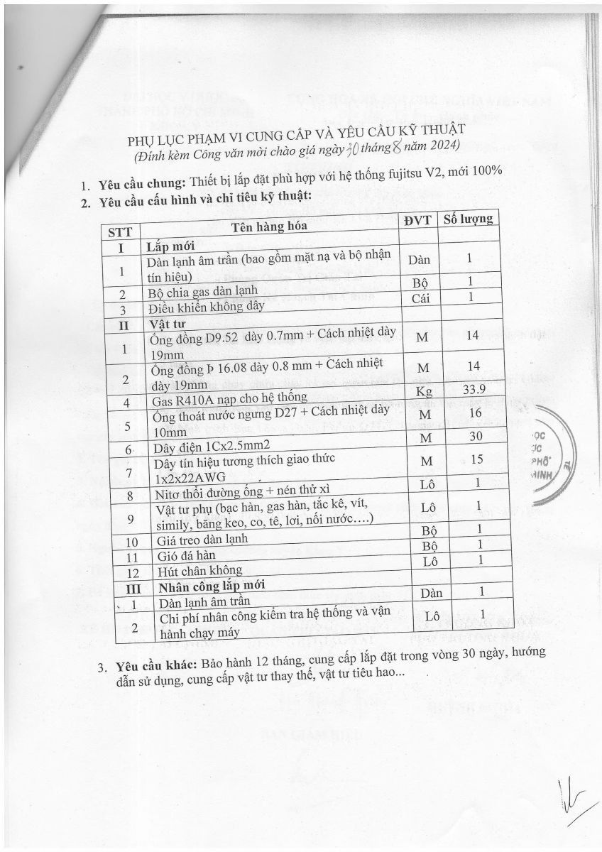 Thời gian nhận hồ sơ chào giá: từ ngày ra thông báo đến trước 14 giờ 00 ngày 10/9/2024