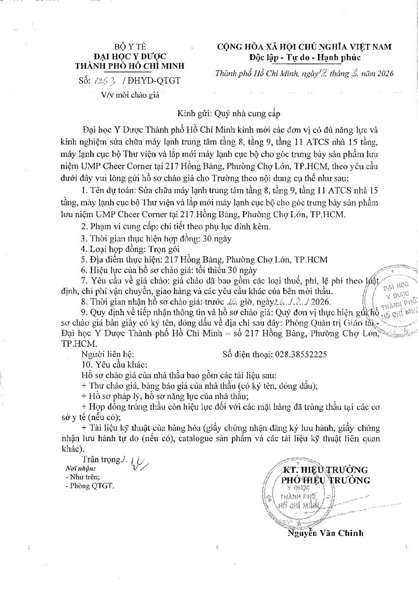 Thời gian nhận hồ sơ chào giá: từ ngày ra thông báo đến trước 16 giờ 00, ngày 26/3/2026