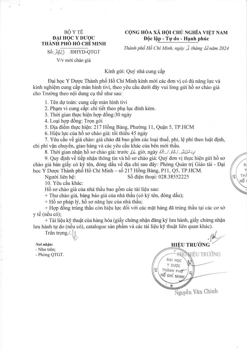 Thời gian nhận hồ sơ chào giá: từ ngày ra thông đến trước 16 giờ 00 ngày 12/12/2024