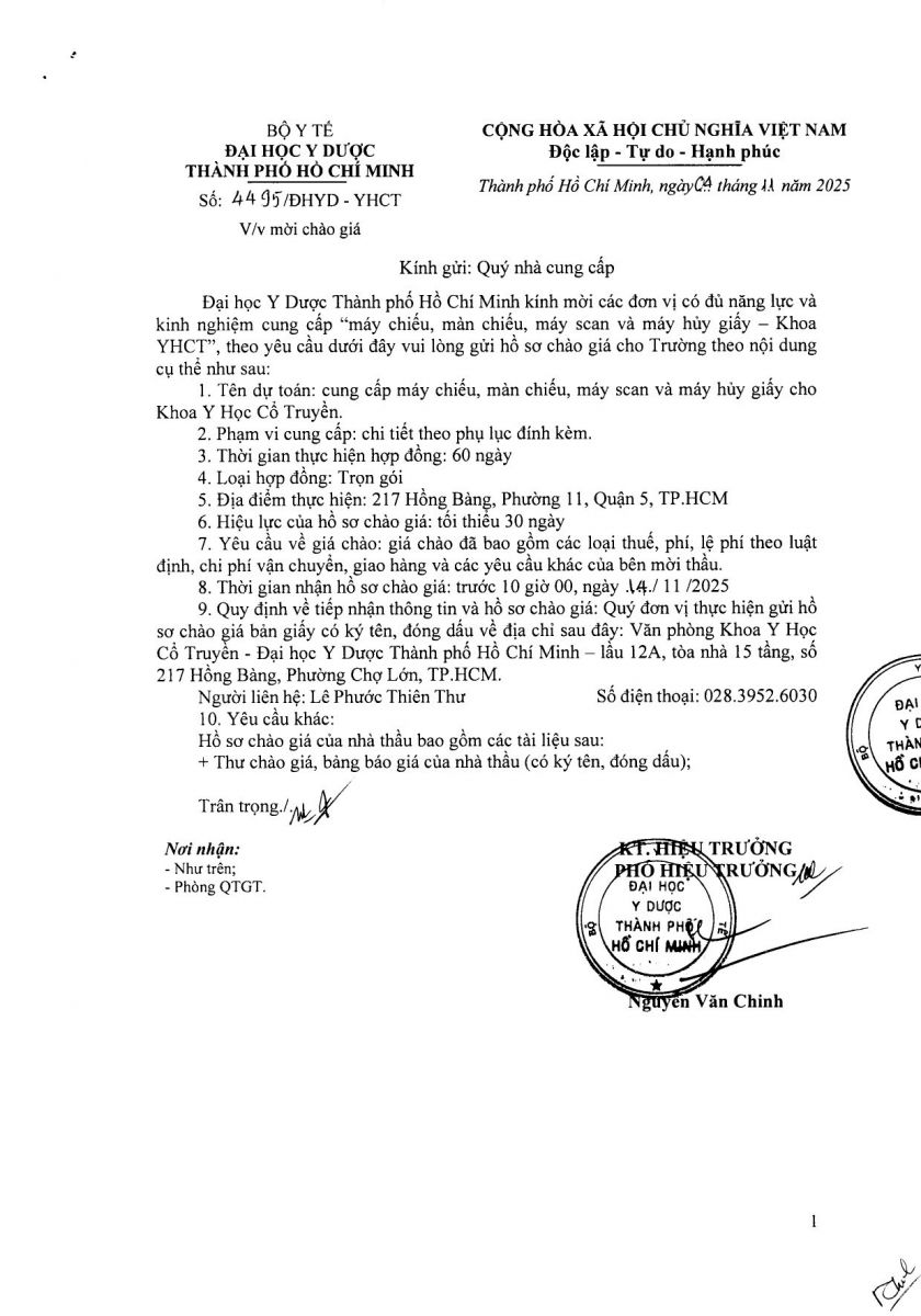 Thời gian nhận hồ sơ chào giá: từ ngày ra thông báo đến trước 10 giờ, ngày 14/11/2025