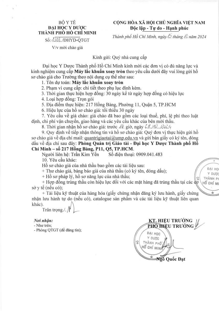 Thời gian nhận hồ sơ chào giá: từ ngày ra thông báo đến trước 16 giờ 00 ngày 28/10/2024