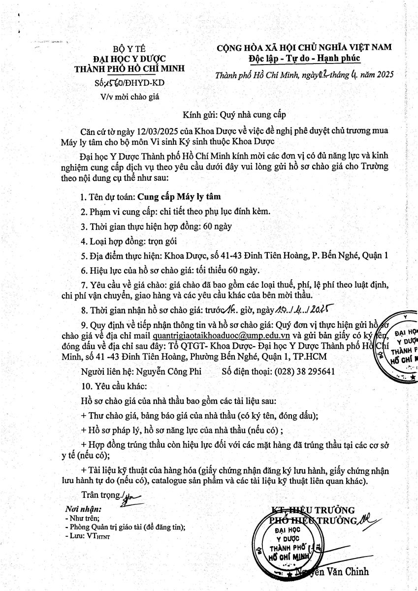 Thời gian nhận hồ sơ chào giá: từ ngày ra thông báo đến trước 16 giờ, ngày 10/4/2025