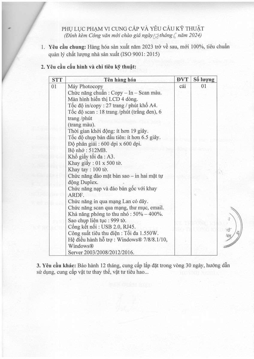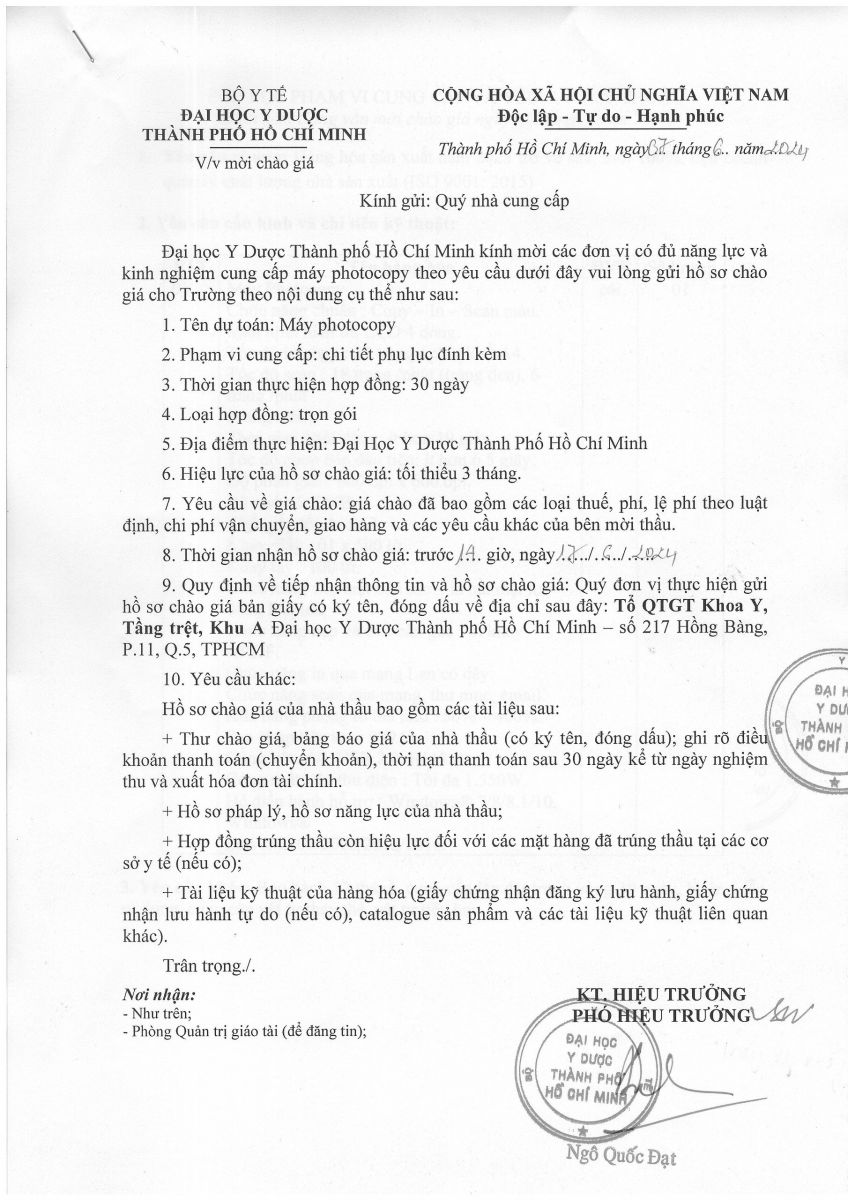 Thời gian nhận hồ sơ chào giá: từ ngày ra thông báo đến trước 14 giờ 00' ngày 17/6/2024