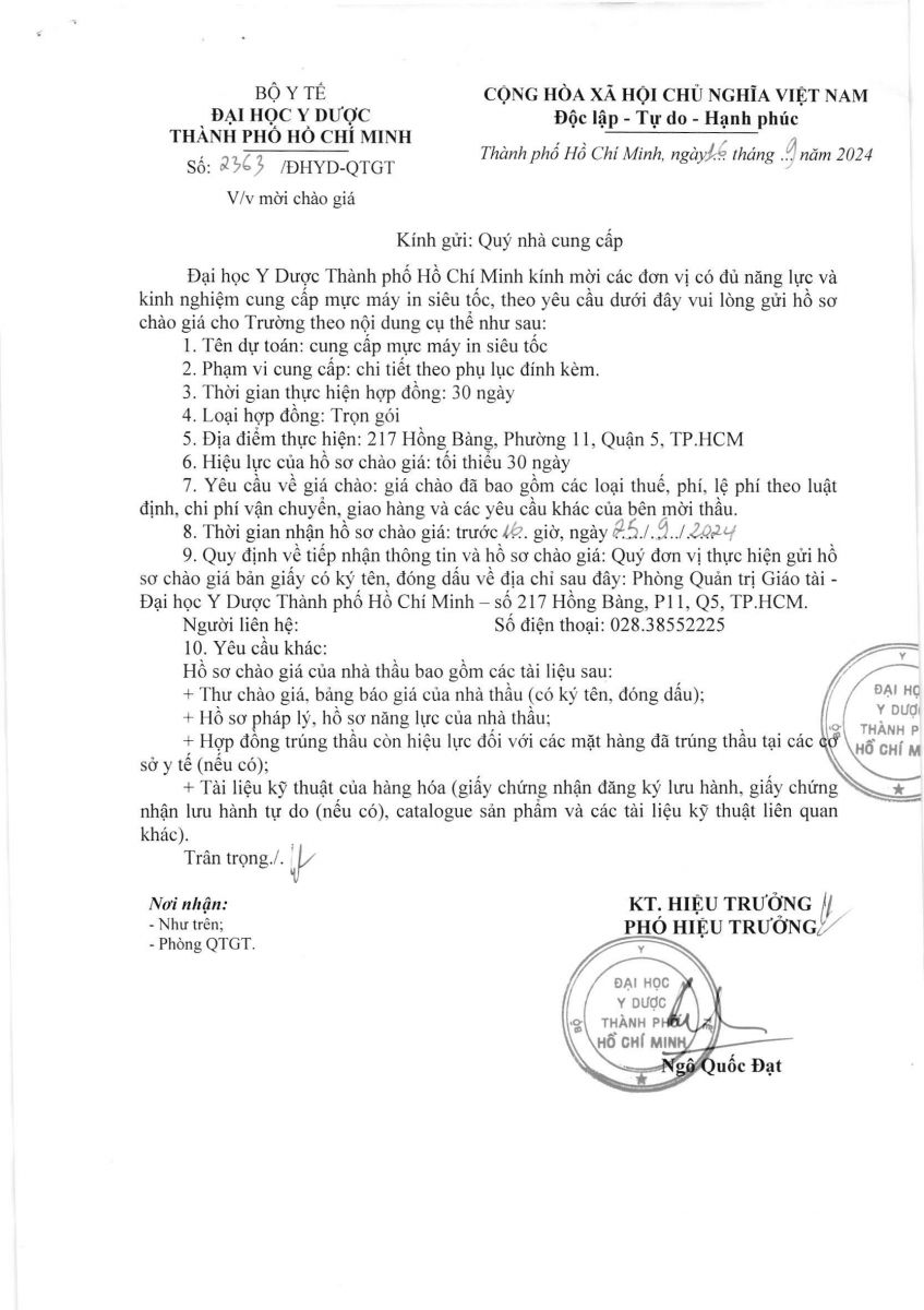 Thời gian nhận hồ sơ chào giá: từ ngày ra thông báo đến trước 16 giờ 00 ngày 25/9/2024