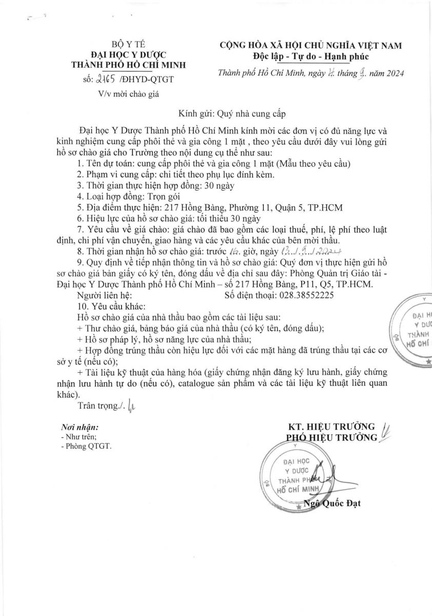 Thời gian nhận hồ sơ chào giá: từ ngày ra thông báo đến trước 16 giờ 00 ngày 13/9/2024