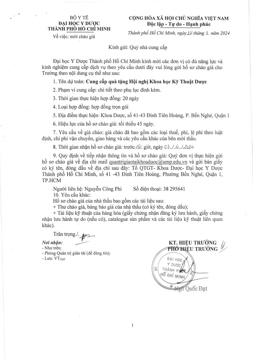 Thời gian nhận hồ sơ chào giá: từ ngày ra thông báo đến trước 16 giờ 00 ngày 03/4/2024