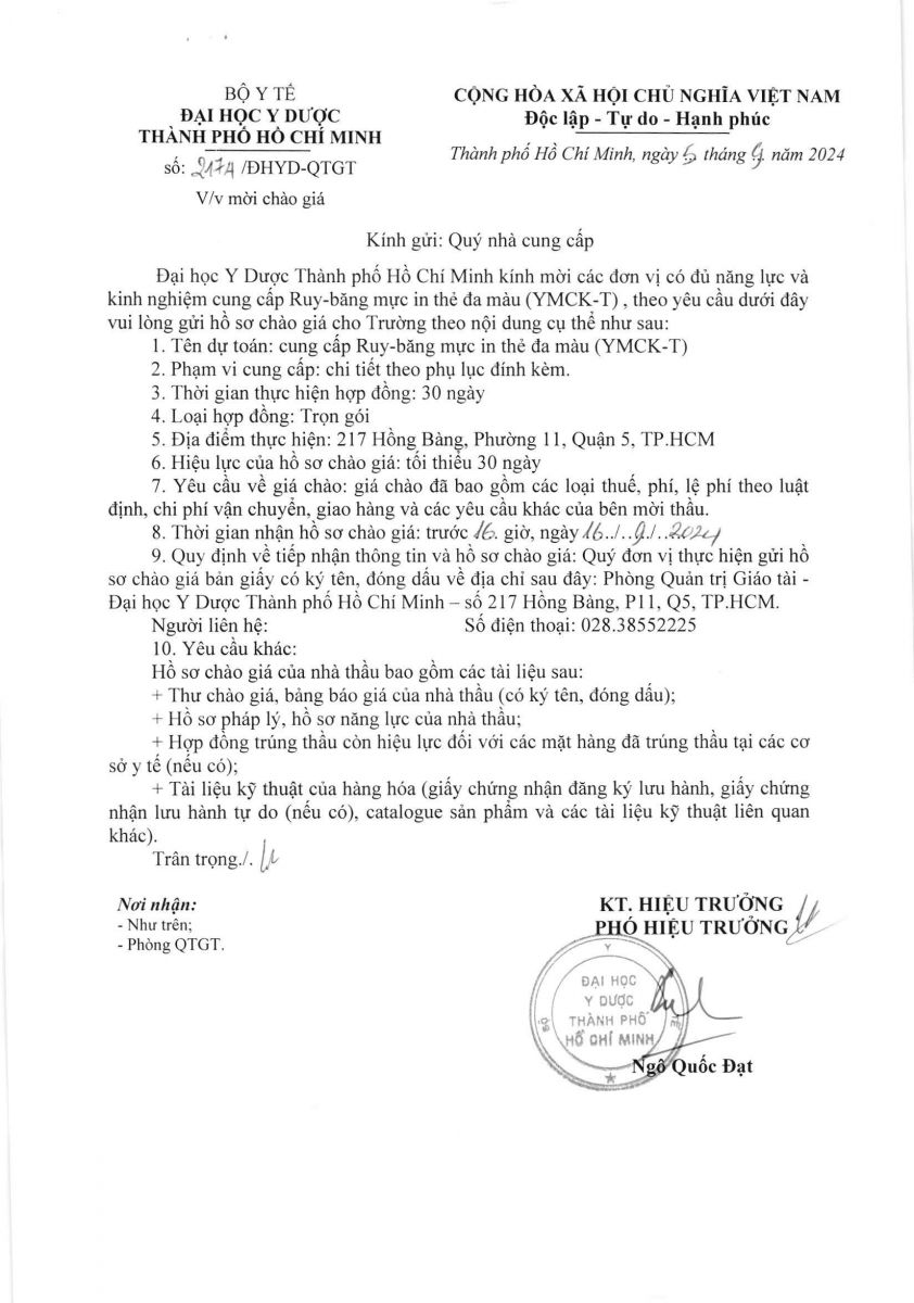 Thời gian nhận hồ sơ chào giá: từ ngày ra thông báo đến trước 16 giờ 00 ngày 16/9/2024