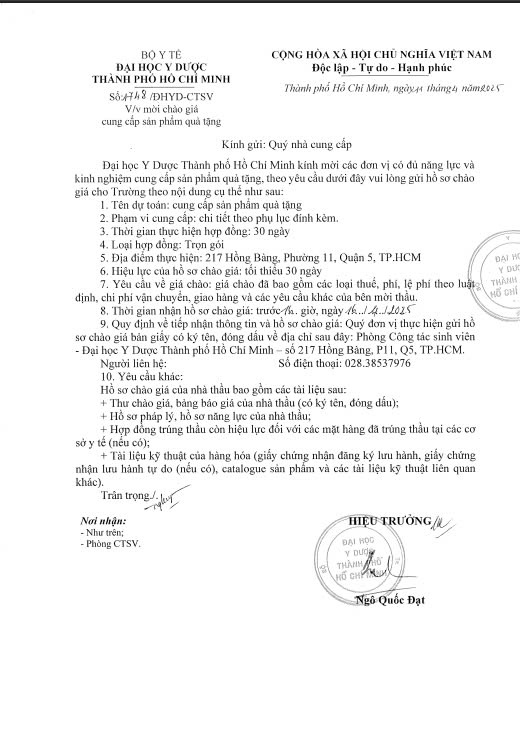 Thời gian nhận hồ sơ chào giá: từ ngày ra thông báo đến trước 16 giờ, ngày 16/4/2025