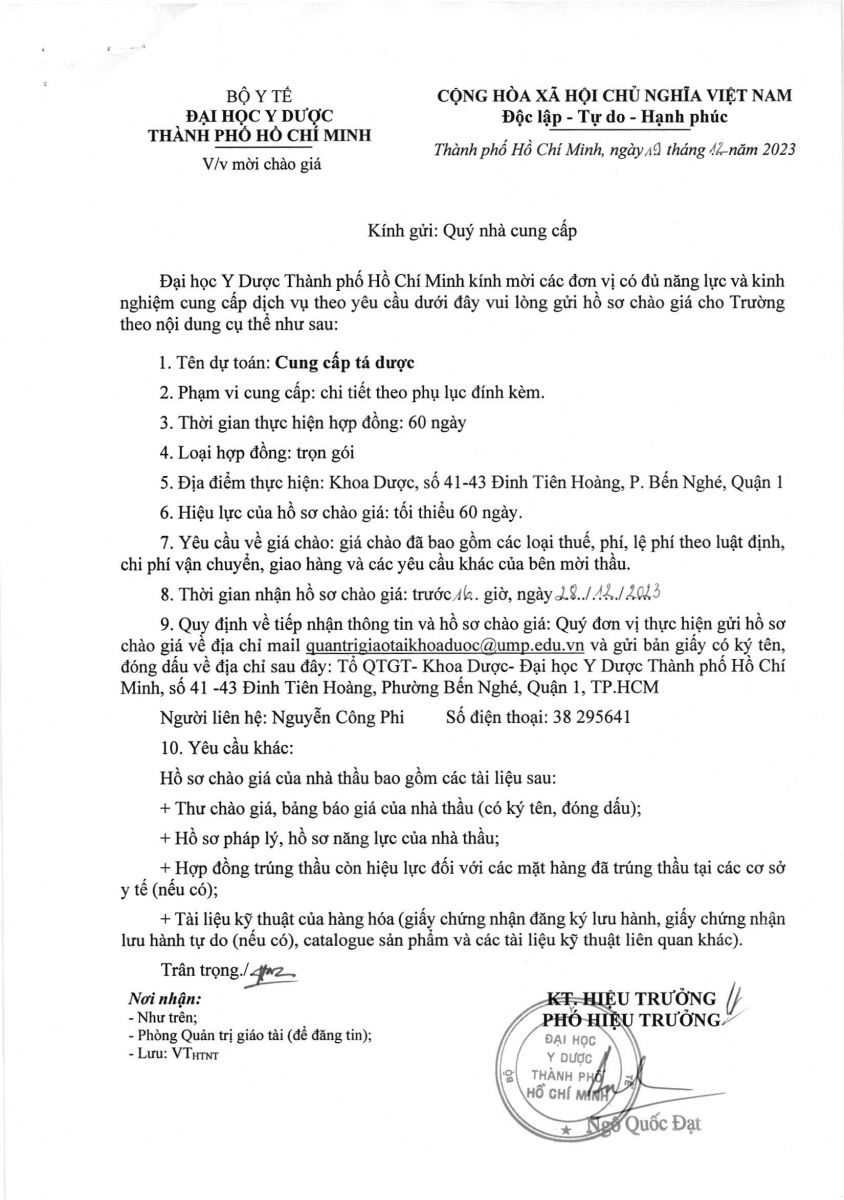 Thời gian nhận hồ sơ chào giá: từ ngày ra thông báo đến trước 16g00 ngày 28/12/2023