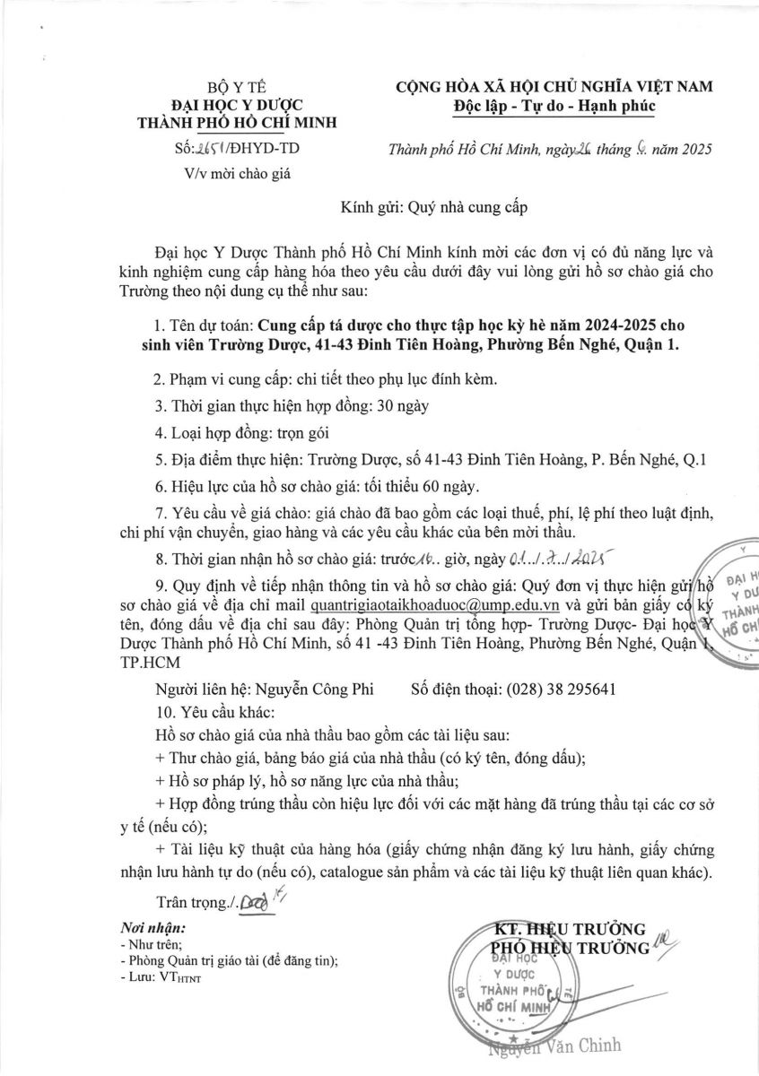 Thời gian nhận hồ sơ chào giá: từ ngày thông báo đến trước 16 giờ, ngày 01/7/2025Phụ lục chi tiết đính kèm