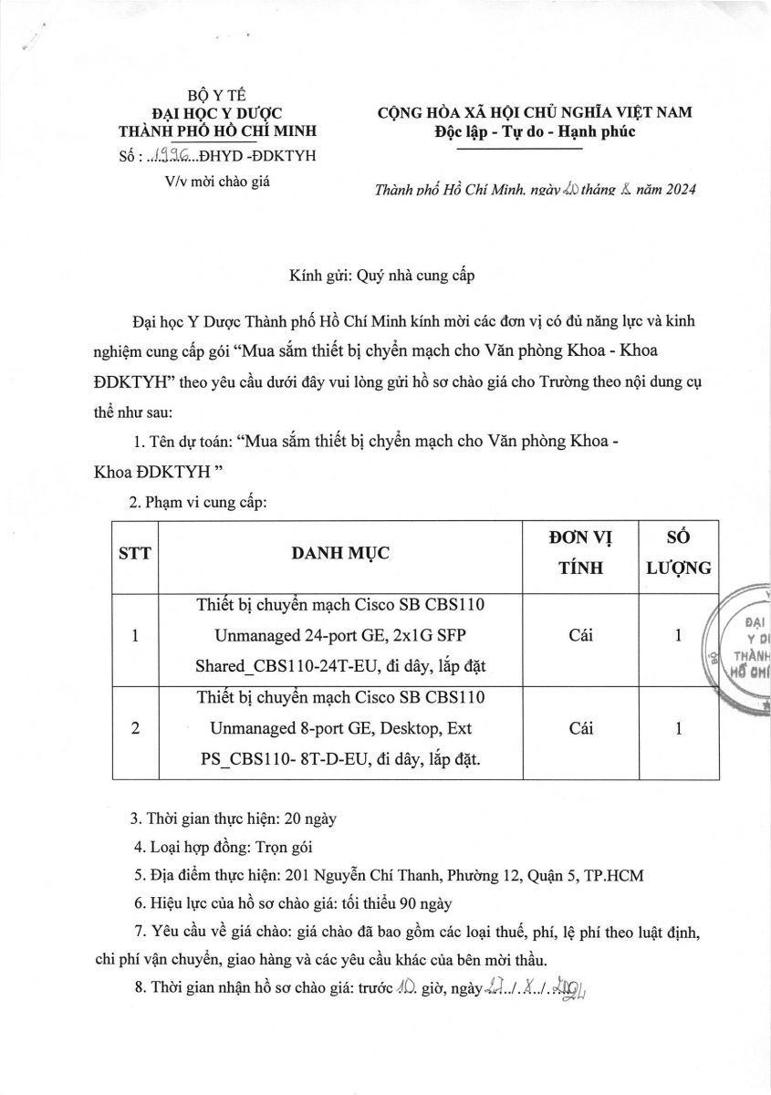 Thời gian nhận hồ sơ chào giá: từ ngày ra thông báo đến trước 10 giờ 00 ngày 27/8/2024