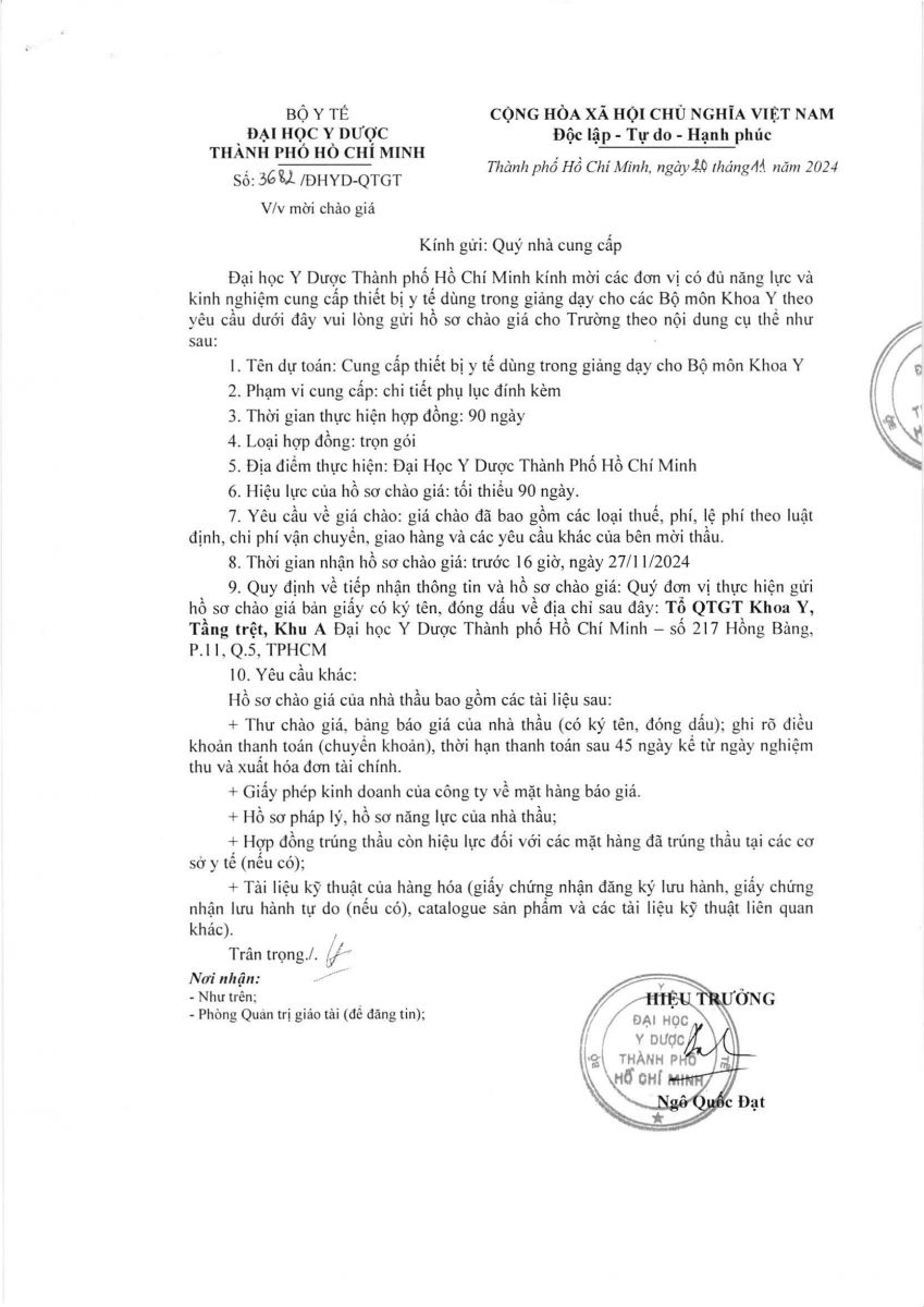 Thời gian nhận hồ sơ chào giá: từ ngày ra thông báo đến trước 16 giờ 00 ngày 27/11/2024