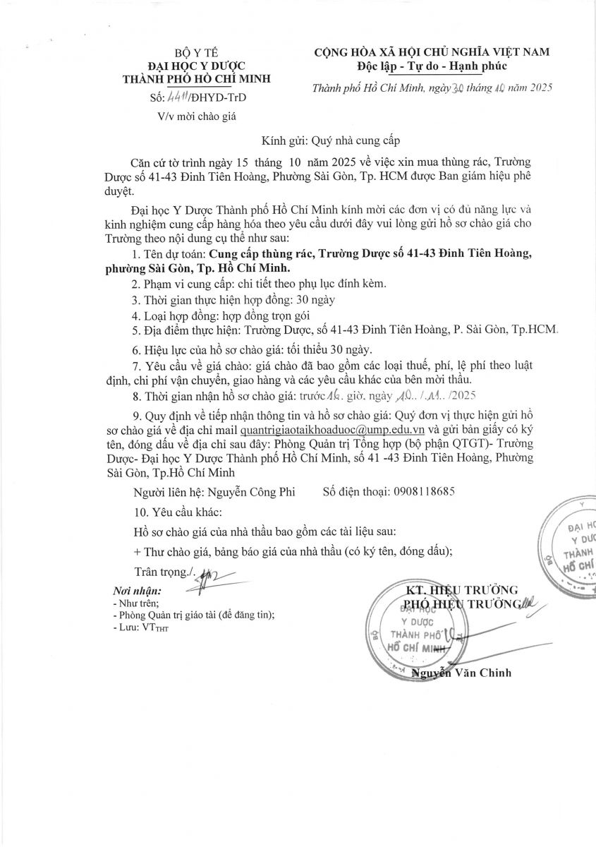 vx88 code mời chào giá: "Cung cấp thùng rác cho Trường Dược" - Đại Học vx88b TP.HCM