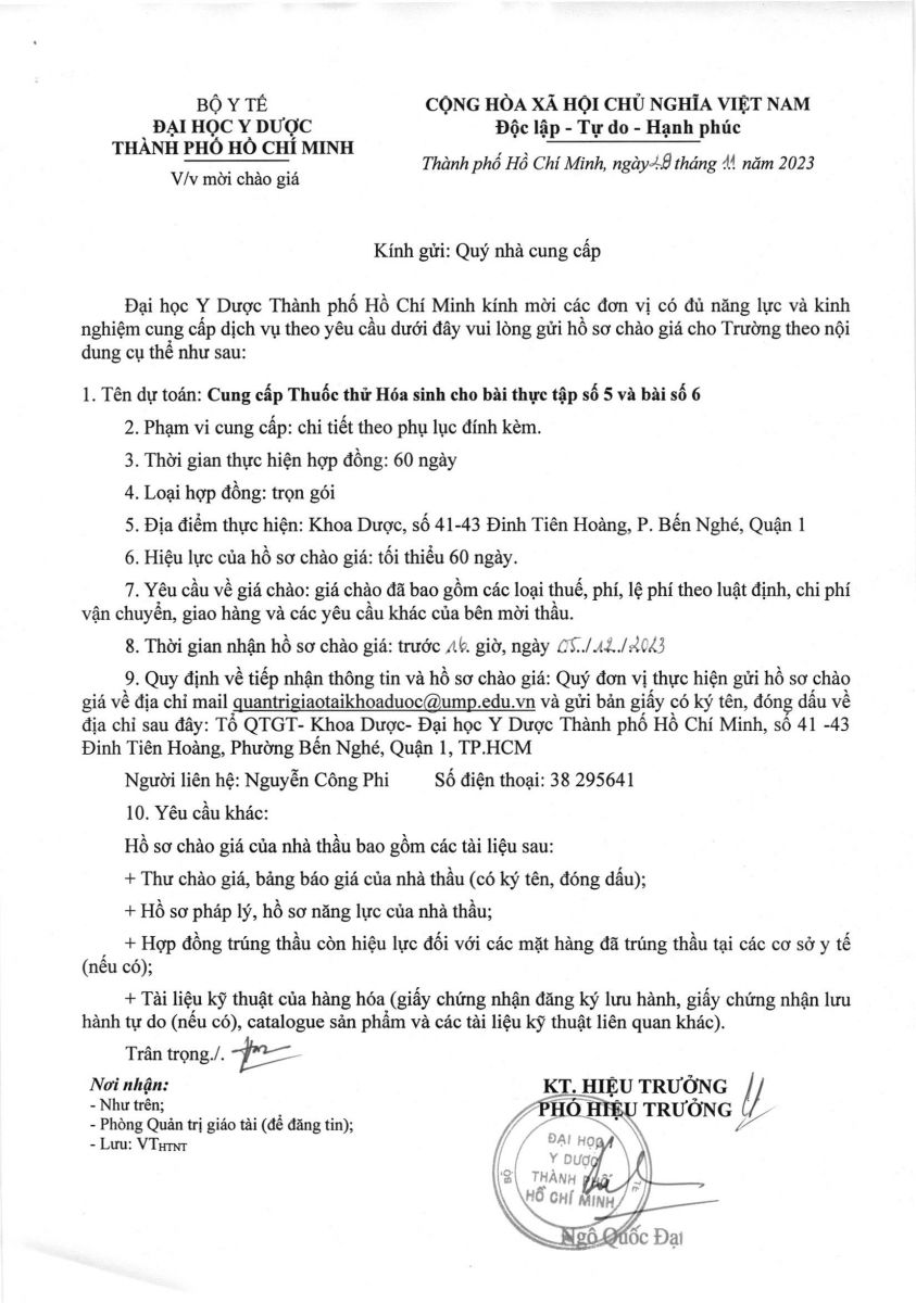 Thời gian nhận hồ sơ chào giá: từ ngày ra thông báo đến trước 16g00 ngày 05/12/2023